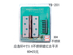 YB-201 304不锈钢 应逸轩 4寸3.0不锈钢镀红古平开 60*23元