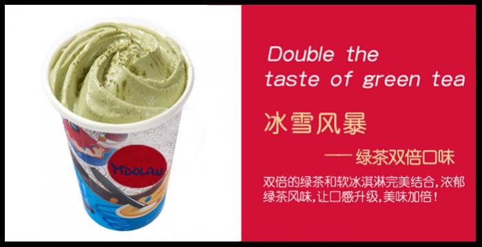 双倍的绿茶和软冰淇淋完美结合,浓郁绿茶风味,让口感升级,美味加倍!