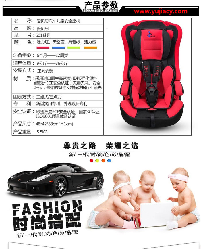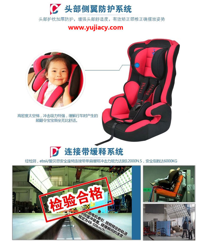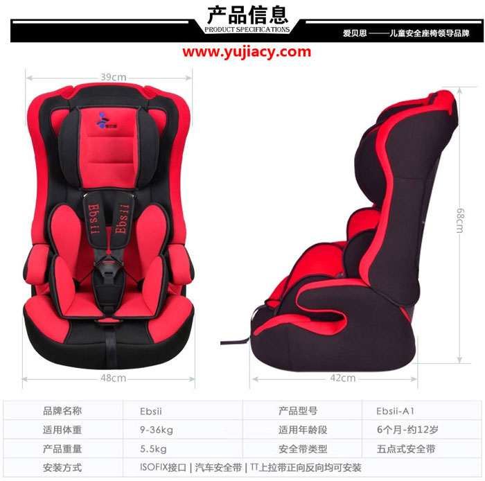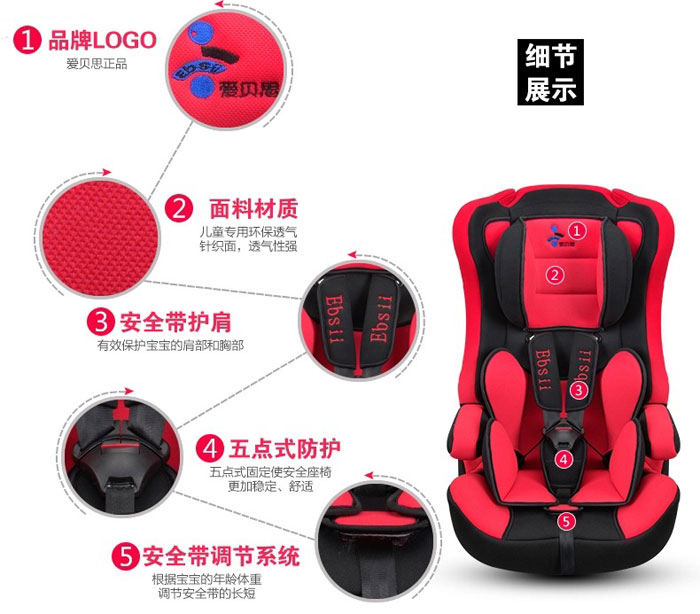 爱贝思(Ebsii)儿童汽车安全座椅又称小孩车载坐椅,就是在汽车上使用的婴儿座椅,适合6个月-12岁之间不同身高的宝宝,让宝宝在乘坐汽车的时候能更安全,可长期使用五方向安全带全力保护宝宝的安全。